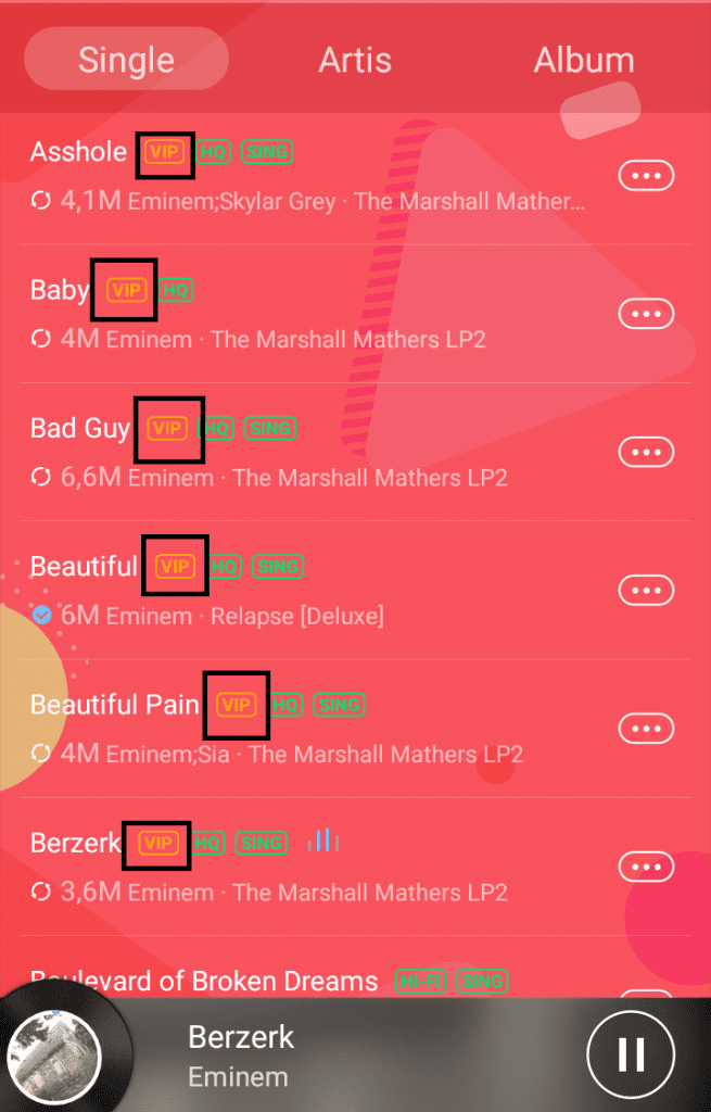 Namun untuk mendengarkan lagu-lagu secara tak terbatas dan eklusif, akun harus berubah VIP terlebih dahulu. Sedangkan mengupgrade akun menjadi VIP harus membayar terlebih dahulu.