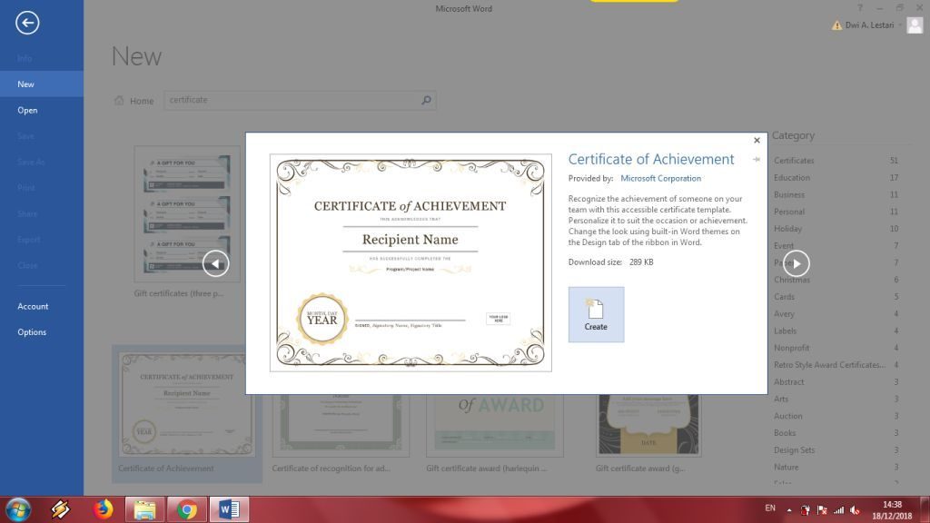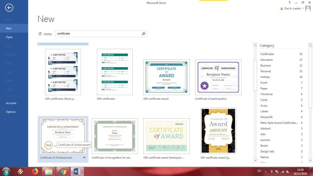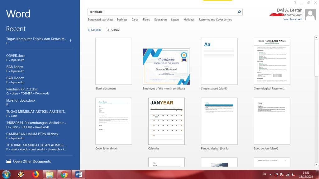 Ternyata, aplikasi Microsoft Word memiliki banyak template yang bisa kamu gunakan, seperti buat sertifikat, acara, agenda tugas, soal ujian, kartu undangan, dan masih banyak lagi. Namun, kamu pastikan koneksi internet di komputer atau laptop kamu itu aktif untuk mendapat template dari Microsoft Word.