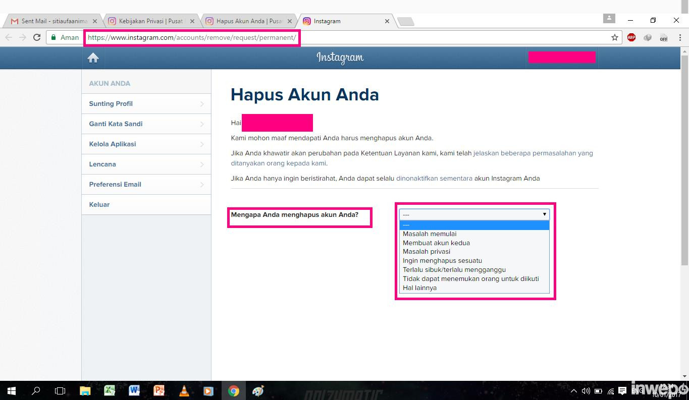 5. Buka link url https://instagram.com/accounts/remove/request/permanent/