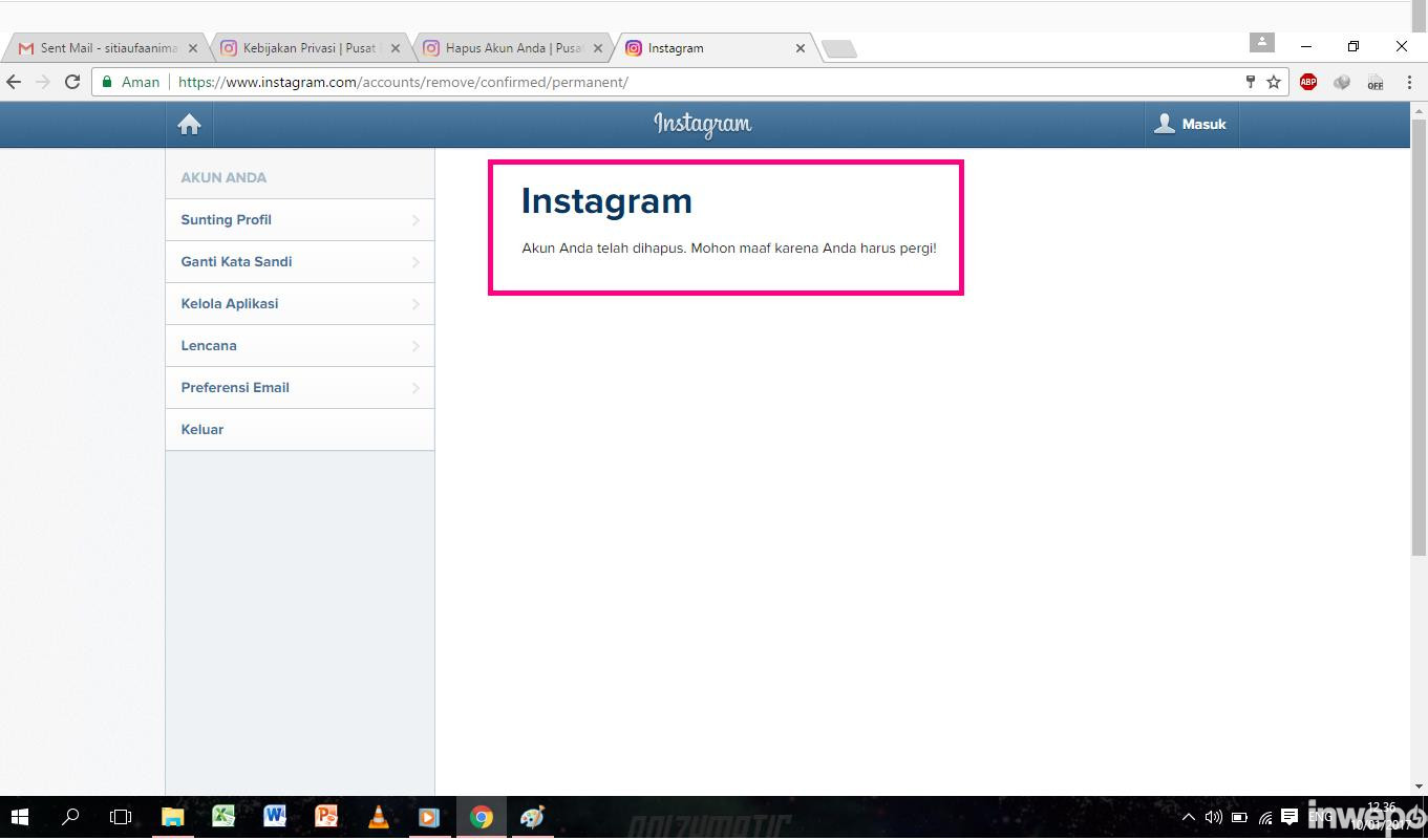 11. Secara otomatis akun kalian sudah di hapus oleh pihak instagram.