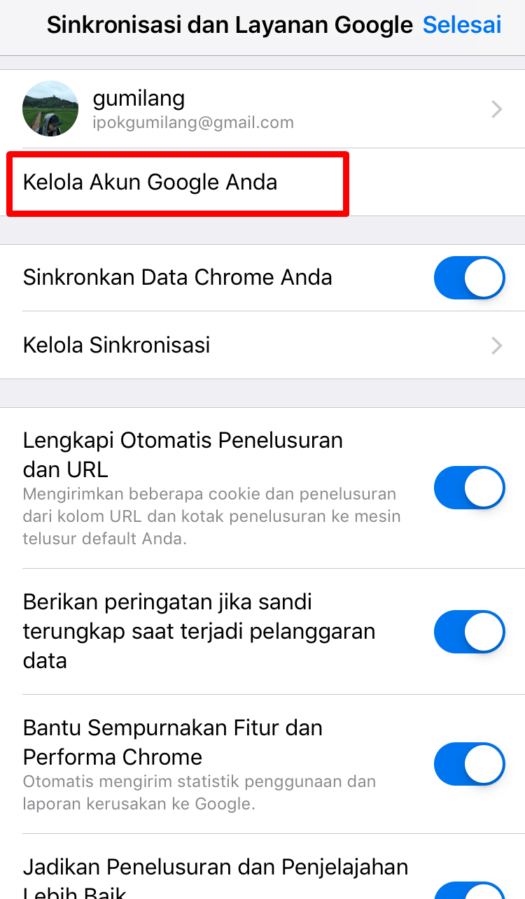 2. Kemudian, klik Kelola Akun Google