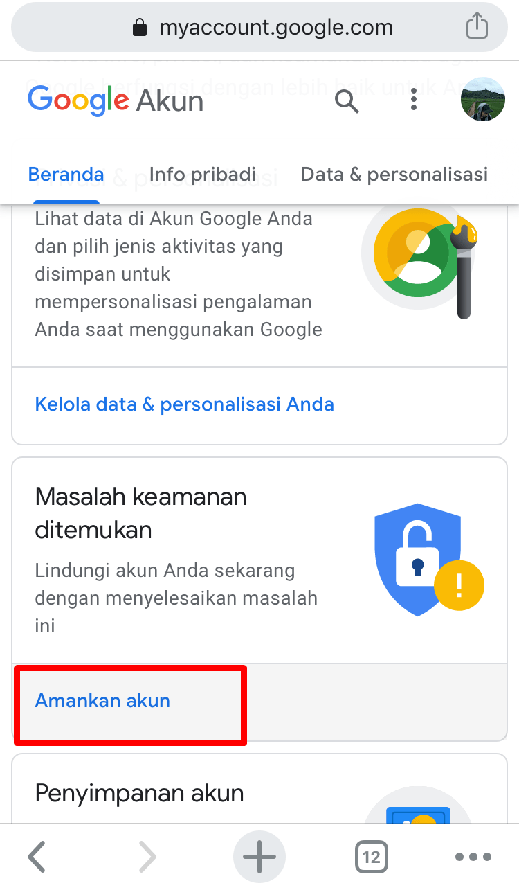 3. Selanjutnya, Klik Amankan Akun