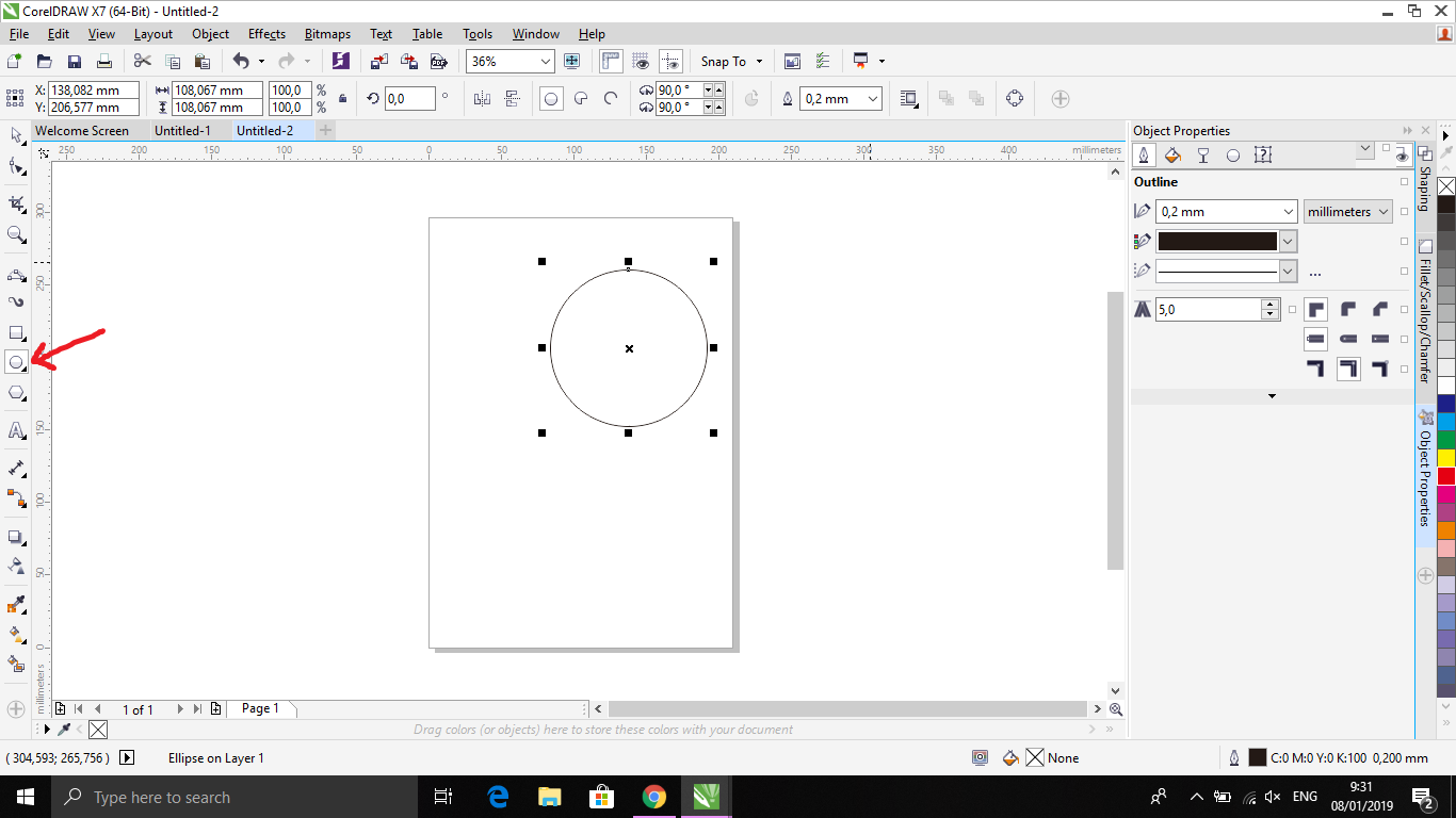 2. Buat lingkaran dengan cara klik shape lingkaran yang terdapat pada sidebar lalu bentuk sesuai keinginan (ditunjukkan pada gambar).