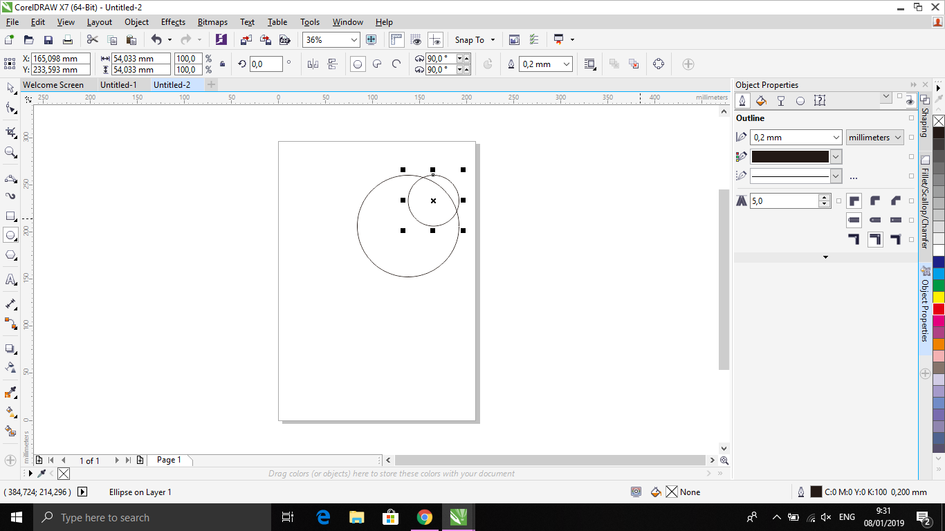 4. Tempatkan posisi lingkaran yang lebih kecil sesuai dengan yang diinginkan (misalnya terlihat pada gambar).