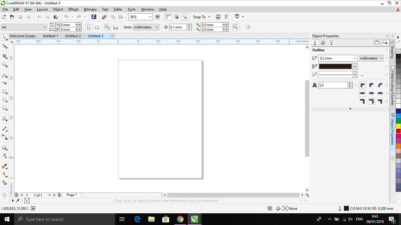 1. Buka Corel Draw lalu buat halaman baru (ukuran lembar kerjanya sesuai dengan kebutuhan masing-masing), disini penulis menggunakan Corel Draw X7.