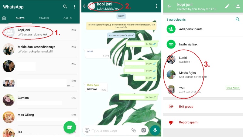 4. apabila semua anggota sudah kamu remove, maka selanjutnya kamu sebagai anggota terakhir yang harus keluar dari group tersebut – Tap exit group