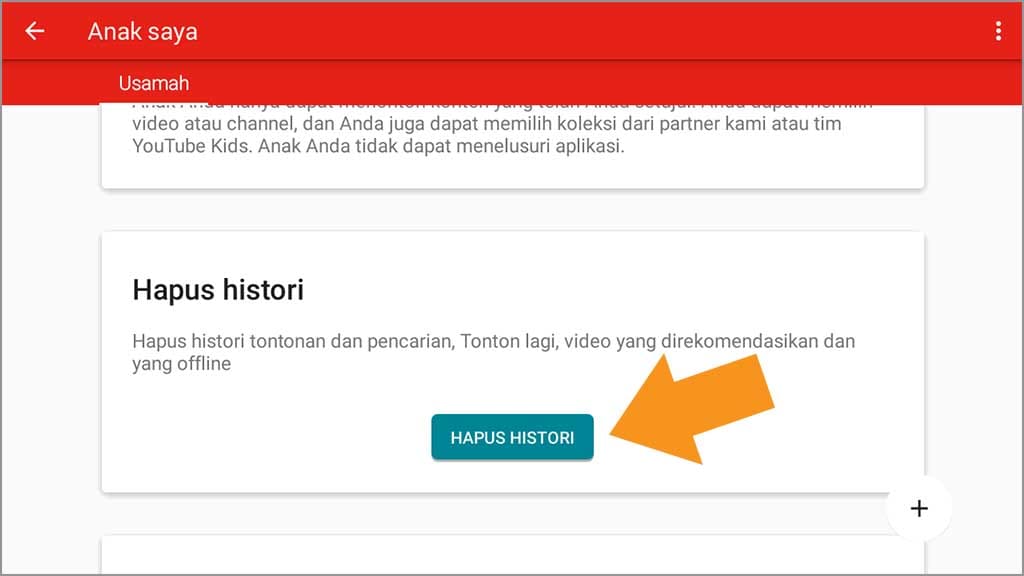 4. Ketika sudah masuk ke pengaturan profil anak, silakan gulir ke bawah dan ketuk hapus histori.