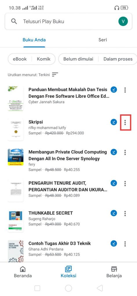 4. Tekan ikon titik tiga untuk menghapus koleksi ebook yang kamu inginkan.