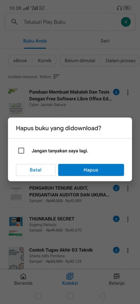 Demikian. Cara menghapus koleksi ebook di Google Play Books Android.