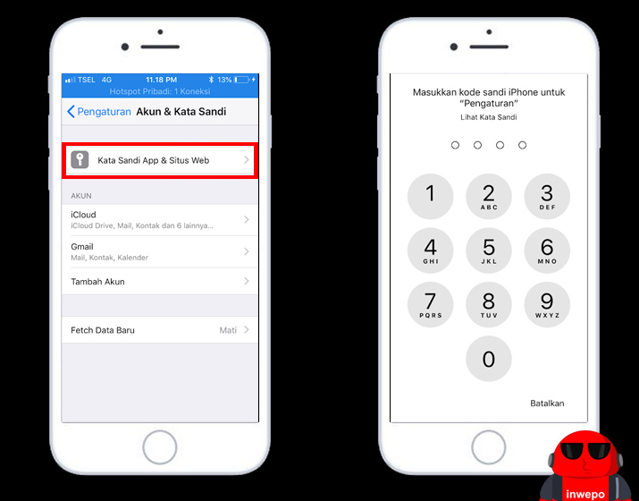 2. Ketuk Kata Sandi App & Situs Web – Masukan Kode Sandi iPhone kamu.