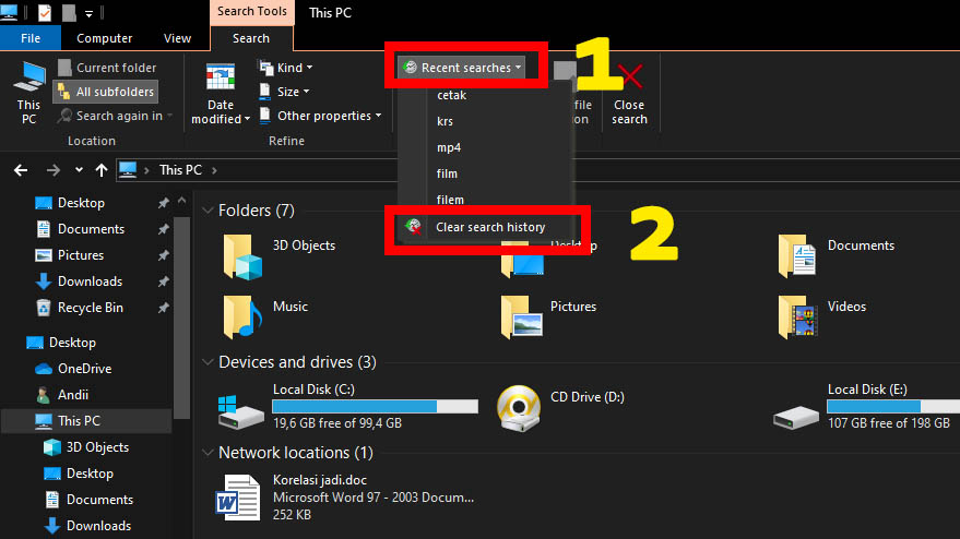 Jika kita sering menggunakan menu search, menu ini akan menyimpan keyword yang kita gunakan saat mencari file. Semakin sering kita menggunakan menu ini, maka semakin banyak pula keyword yang disimpan pada riwayat pencarian. Beberapa orang mungkin menemukan kesulitan untuk menghapus riwayat pencarian yang ada di File Exploler. Untuk menghapus riwayat pencarian, kita hanya perlu masuk ke pengaturan yang ada pada file explorer. Pada artikel kali ini, penulis akan membagikan Cara Mudah Menghapus Riwayat Pencarian di File Explorer Windows 10.