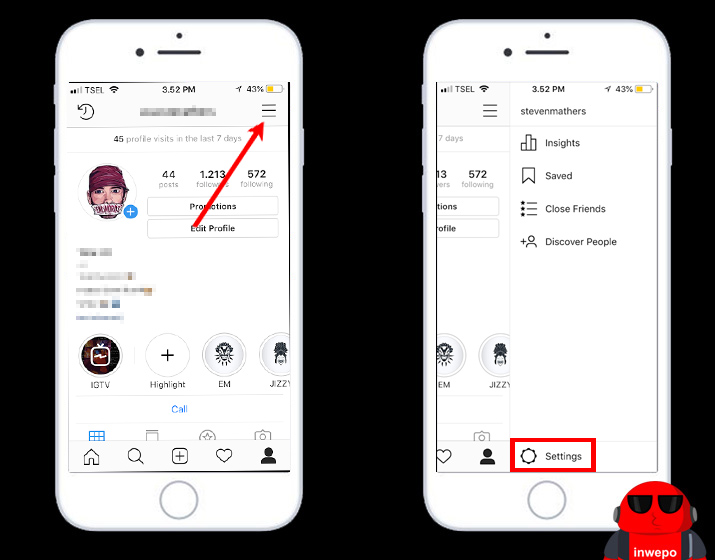 1. Buka aplikasi Instagram – ketuk tiga garis – ketuk Settings.