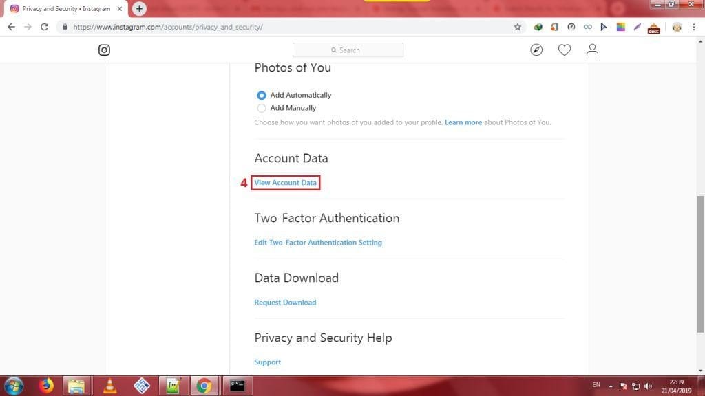 8. Lakukan scrolling ke bawah sampai ketemu opsi Account Data, klik View Account Data.