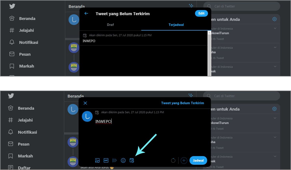 3. Klik tweet yang berada di tab terjadwal, dan klik ikon tweet terjadwal.