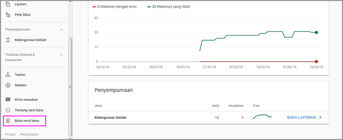 1. Buka Google Search Console – buka versi lama.