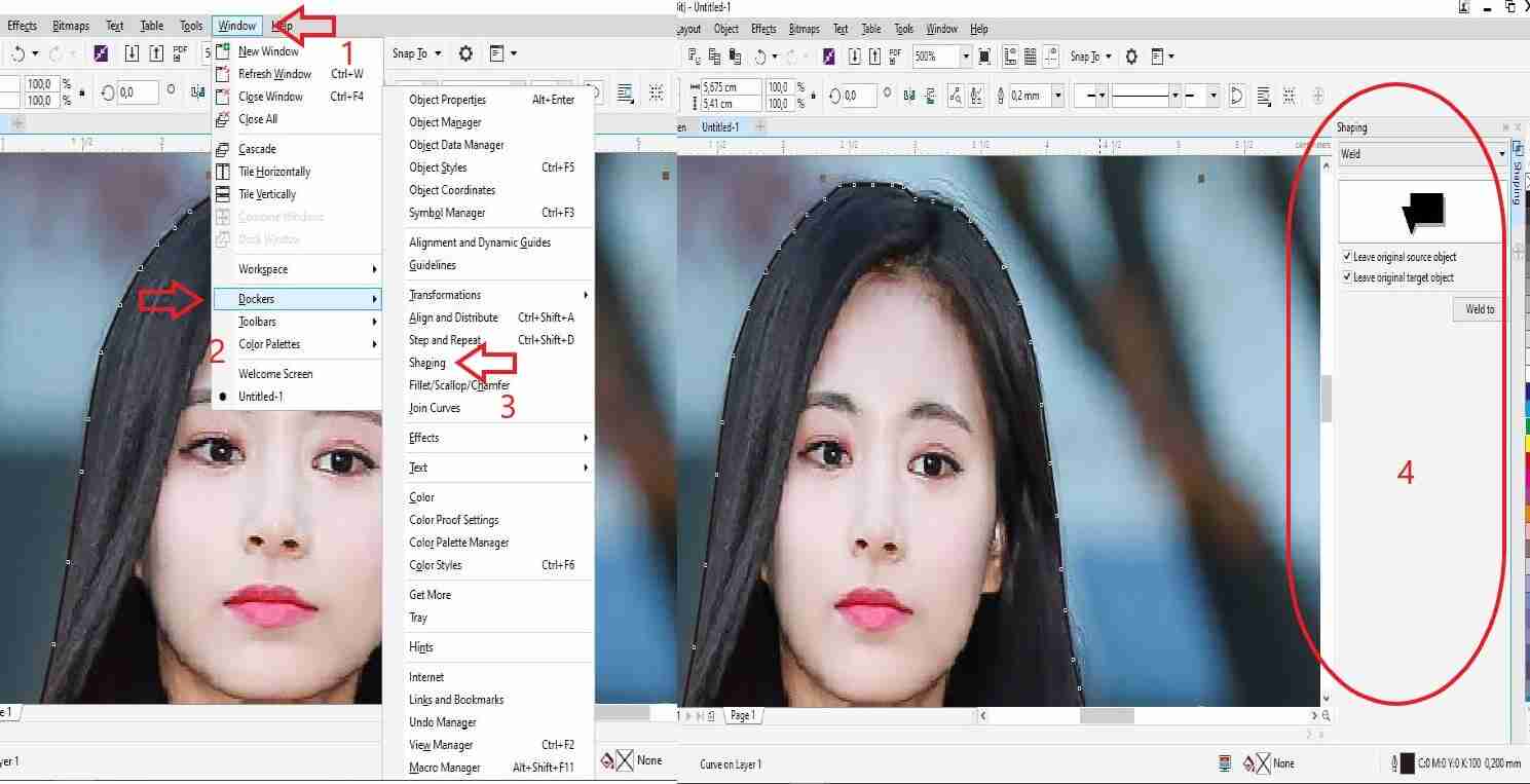 5. Langkah kelima, klik Windows lalu pilih Dockers lalu klik Shaping. Maka akan muncul jendela baru pada sisi kanan.