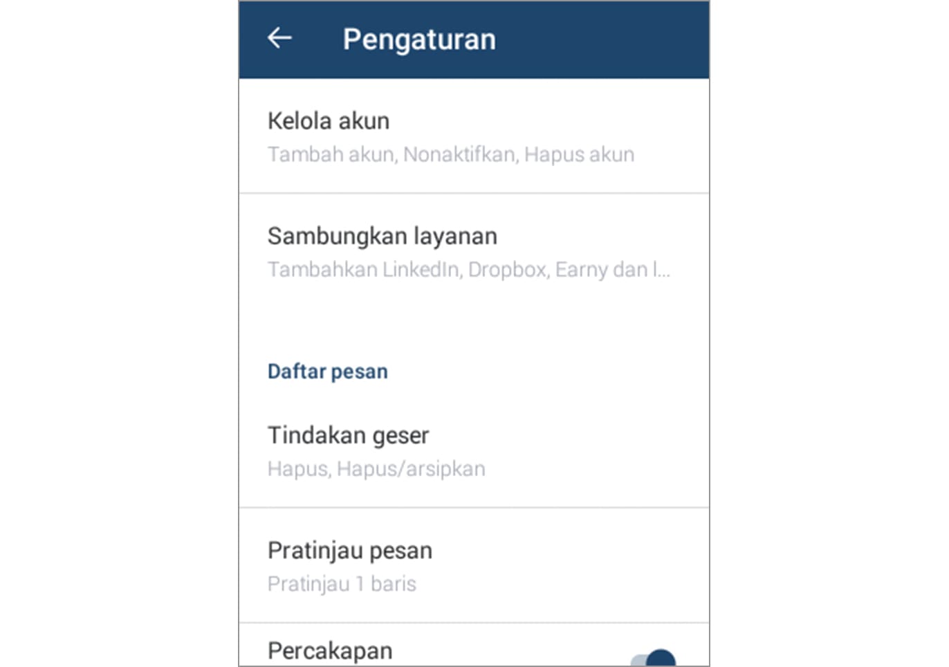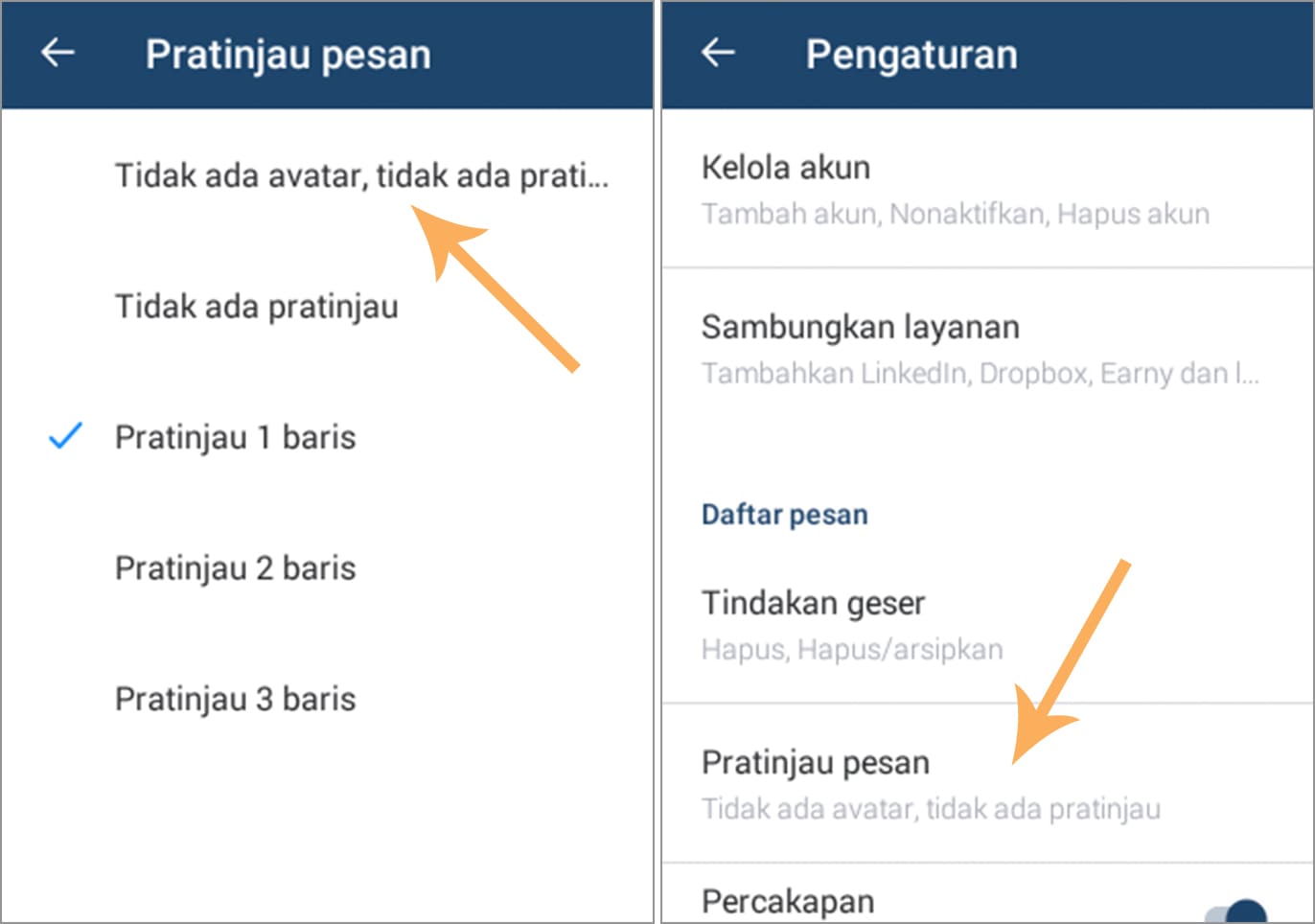 4. Pada pengaturan, silakan pilih pratinjau pesan.
