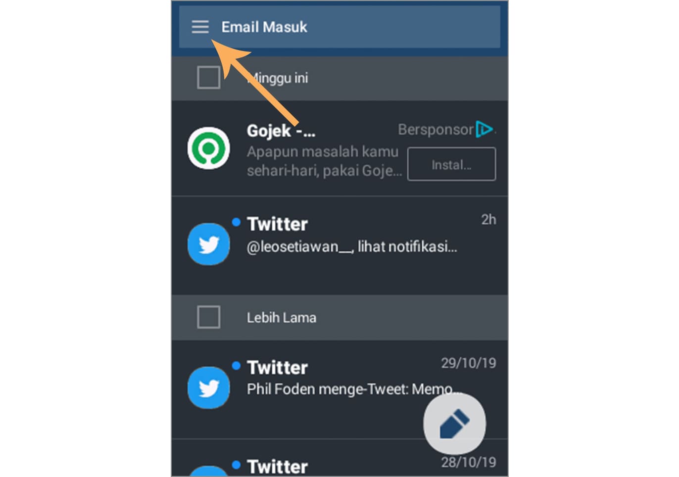 2. Jika sudah terbuka, silakan ketuk tiga garis horizontal yang terletak di pojok kiri atas.