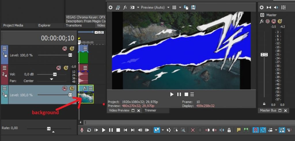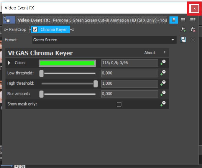 Catatan: Video yang sudah dipasang preset chrome keyer secara otomatis akan menjadi transparan pada warna yang dipilih, misalnya jika warna hijau maka semua warna hijau yang terdapat pada video tersebut akan berubah menjadi transparan.