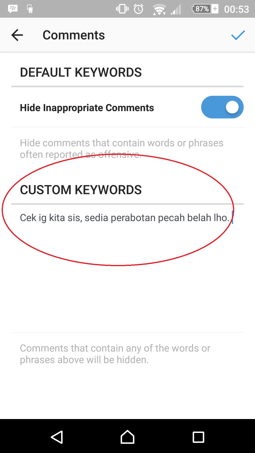 Berikut ini penulis berikan langkah-langkah untuk menghilangkan komentar negative di Instagram secara otomatis. Let’s go!
