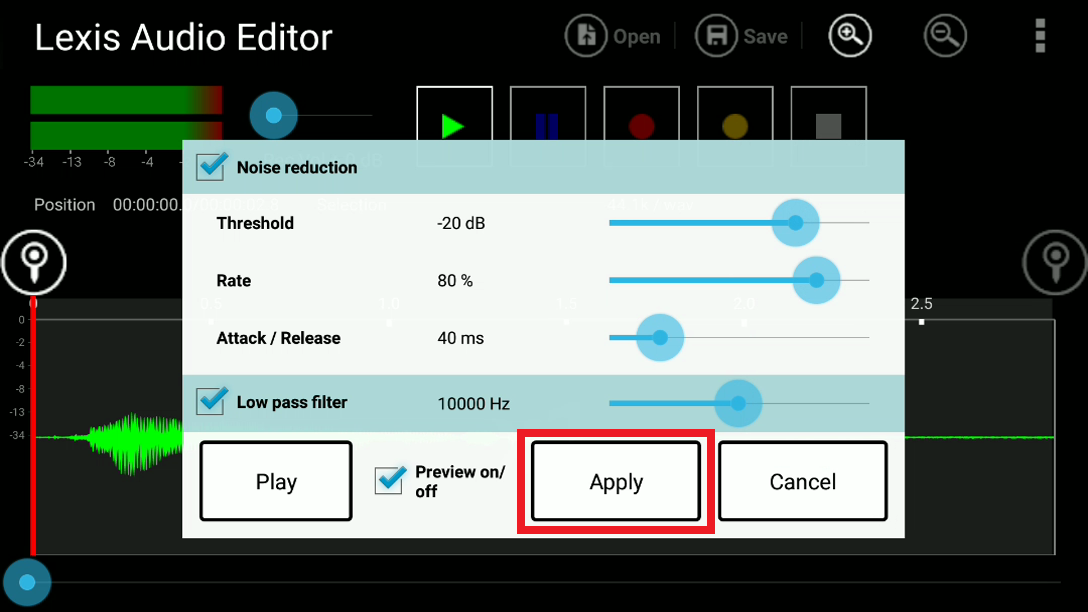 7. Jika sudah selesai, silahkan kamu dengarkan hasil yang didapat. jika bagus, kamu bisa langsung melakukan penyimpanan ke memori kamu dengan tap tombol save yang ada di atas aplikasi. Tetapi jika masih terdengar noise, silahkan ulangi sekali lagi seperti langkah di atas. Selesai.