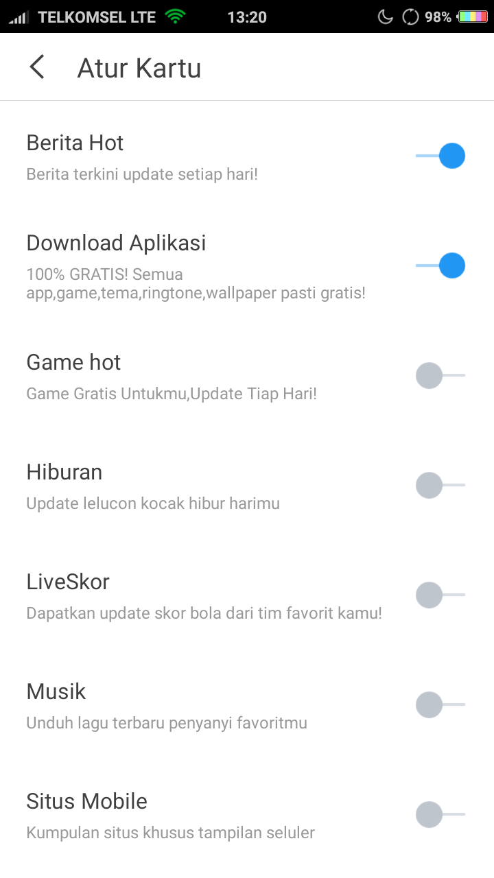 6. Pilih “Atur Kartu” (tombol paling bawah dari Home).