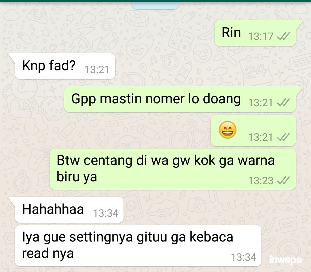 Bagaimana cara agar tanda centang biru tidak terlihat (no read chat) pada saat menerima pesan dari WhatsApp seperti gambar di atas? Berikut cara mengaktifkan fitur no read chat message atau menghilangkan tanda biru di WhatsApp.