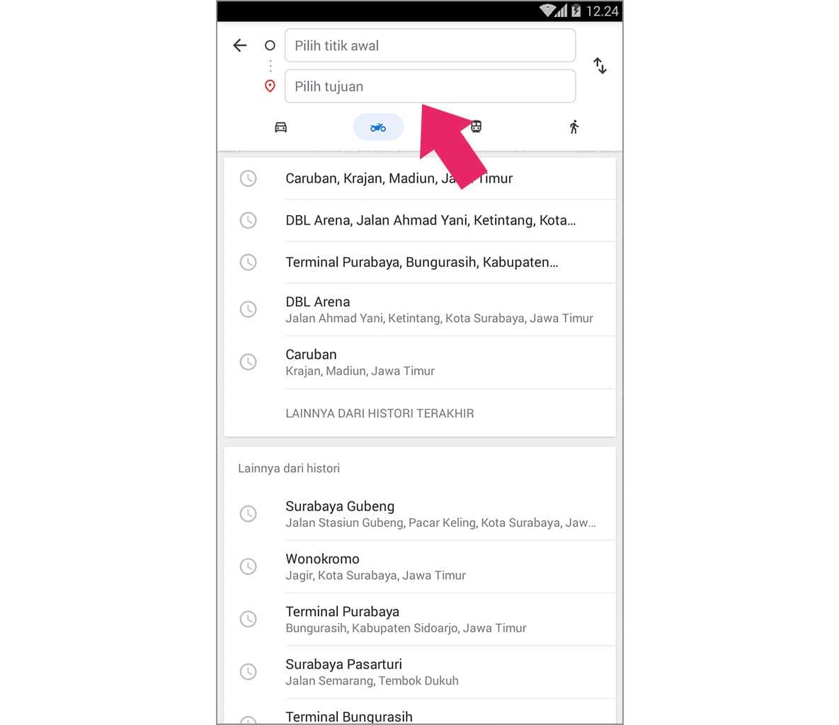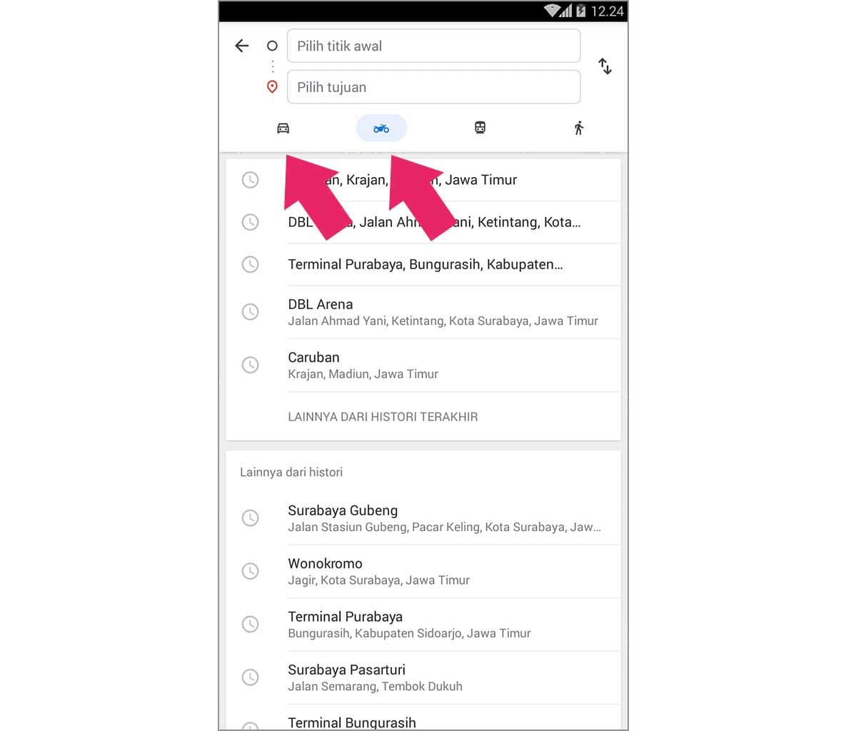 3. Jika kamu menggunakan motor, maka silakan ketuk ikon motor. Sebaliknya, jika kamu menggunakan mobil, maka silakan ketuk ikon mobil.
