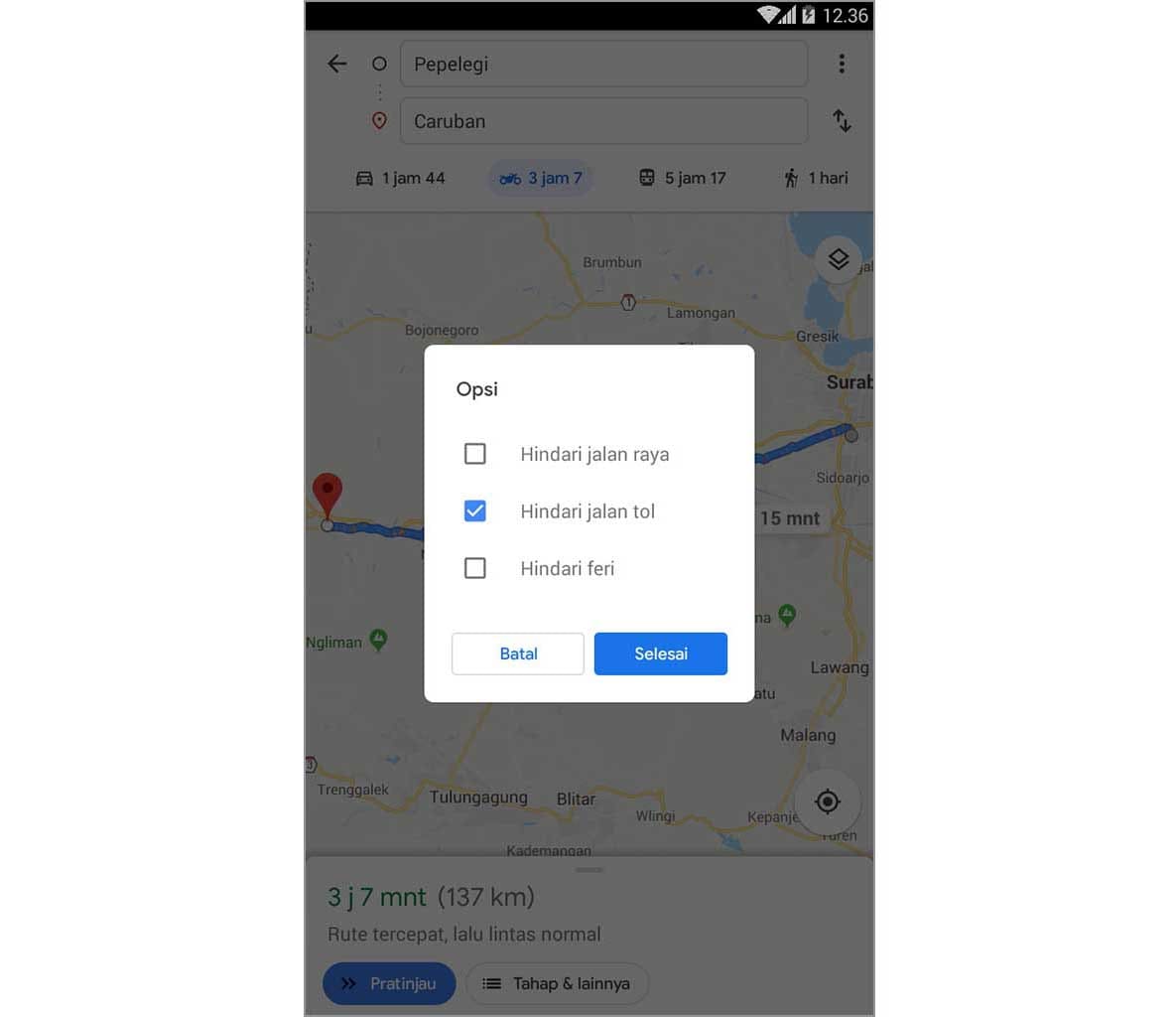 Demikian tutorial cara menghindari jalan tol di Google Maps Android. Semoga bermanfaat.