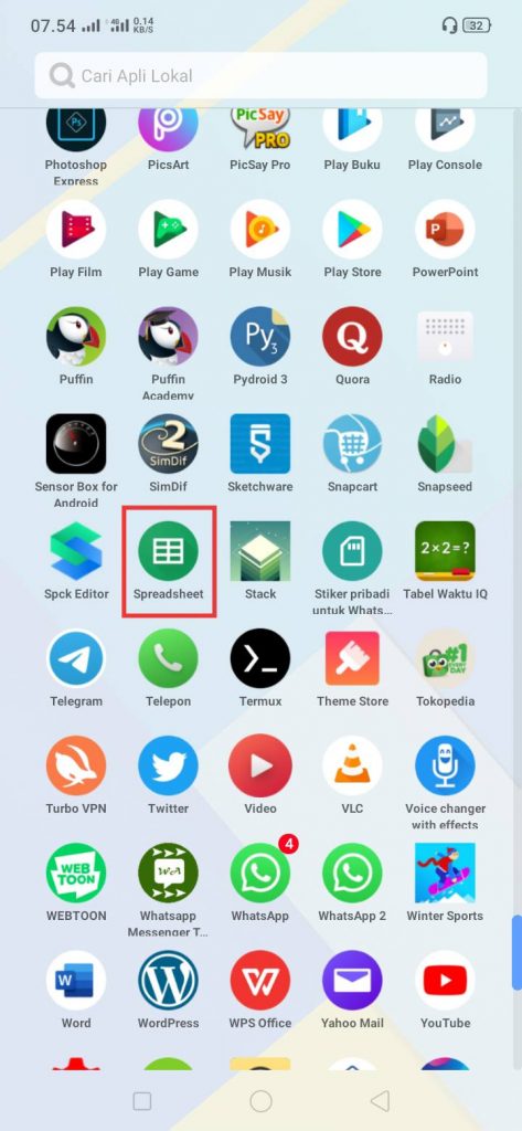 2. Buka aplikasi Google Spreadsheet. Apabila kamu belum memasang aplikasi Google Spreadsheet di Android kamu, kamu bisa memasang aplikasi Google Spreadsheet di Play Store.