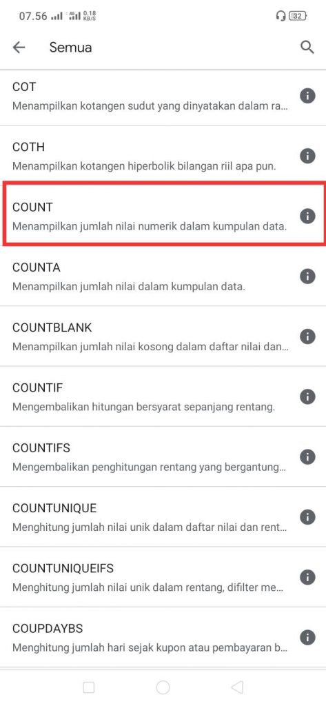 6. Pilihlah COUNT.