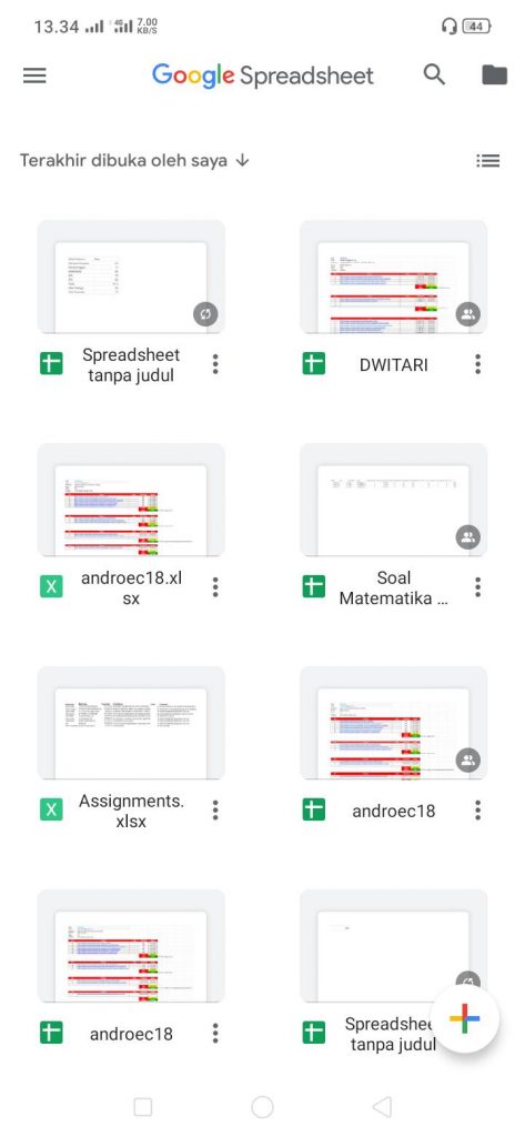 3. Tekan float button “+” untuk membuat data Google Sheet yang baru atau membuka data Google Sheet yang ada.