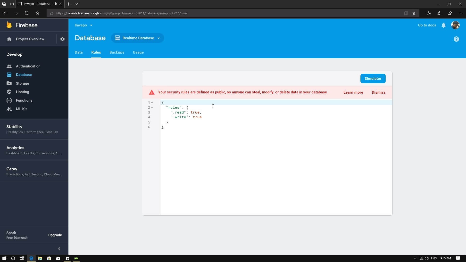 14. Saat kamu membuat realtime database kamu harus menentukan rules dari database tersebut.