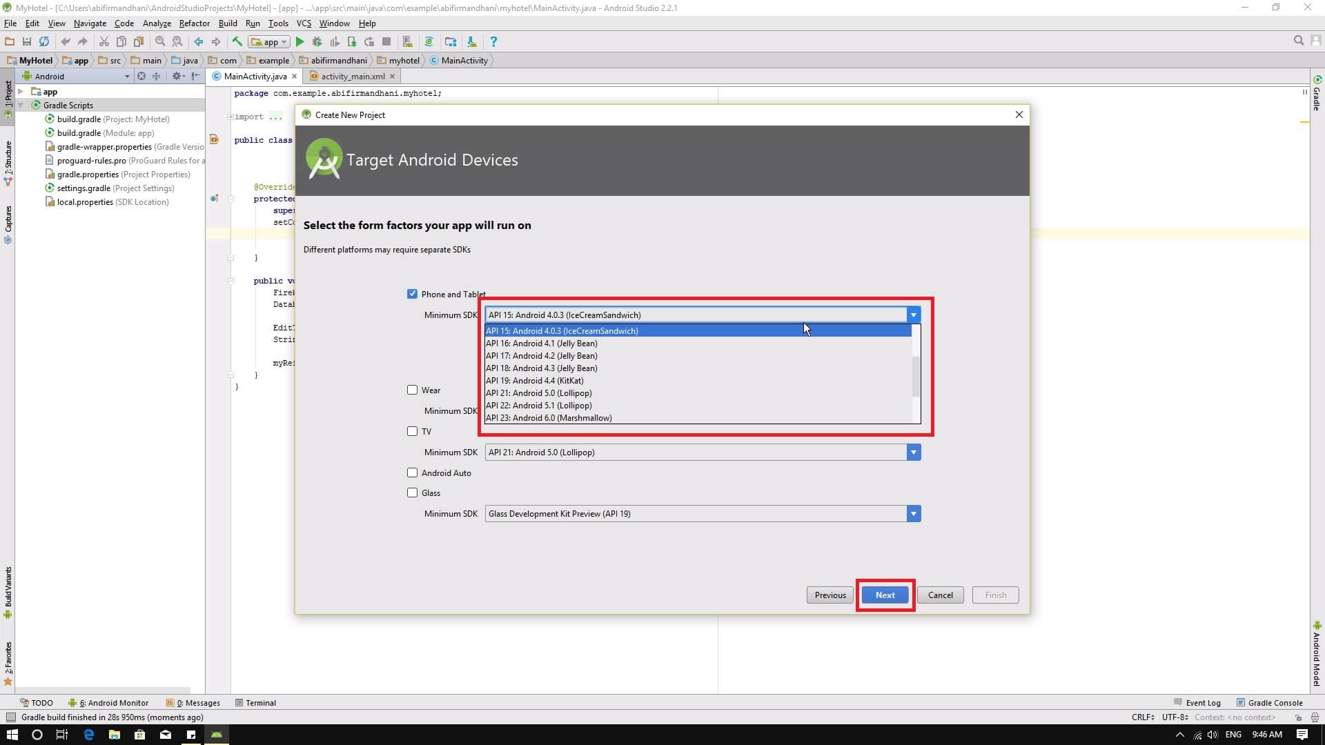 2. Pilih platform yang akan kamu kembangkan dan pilih API nya juga, lalu klik tombol next.