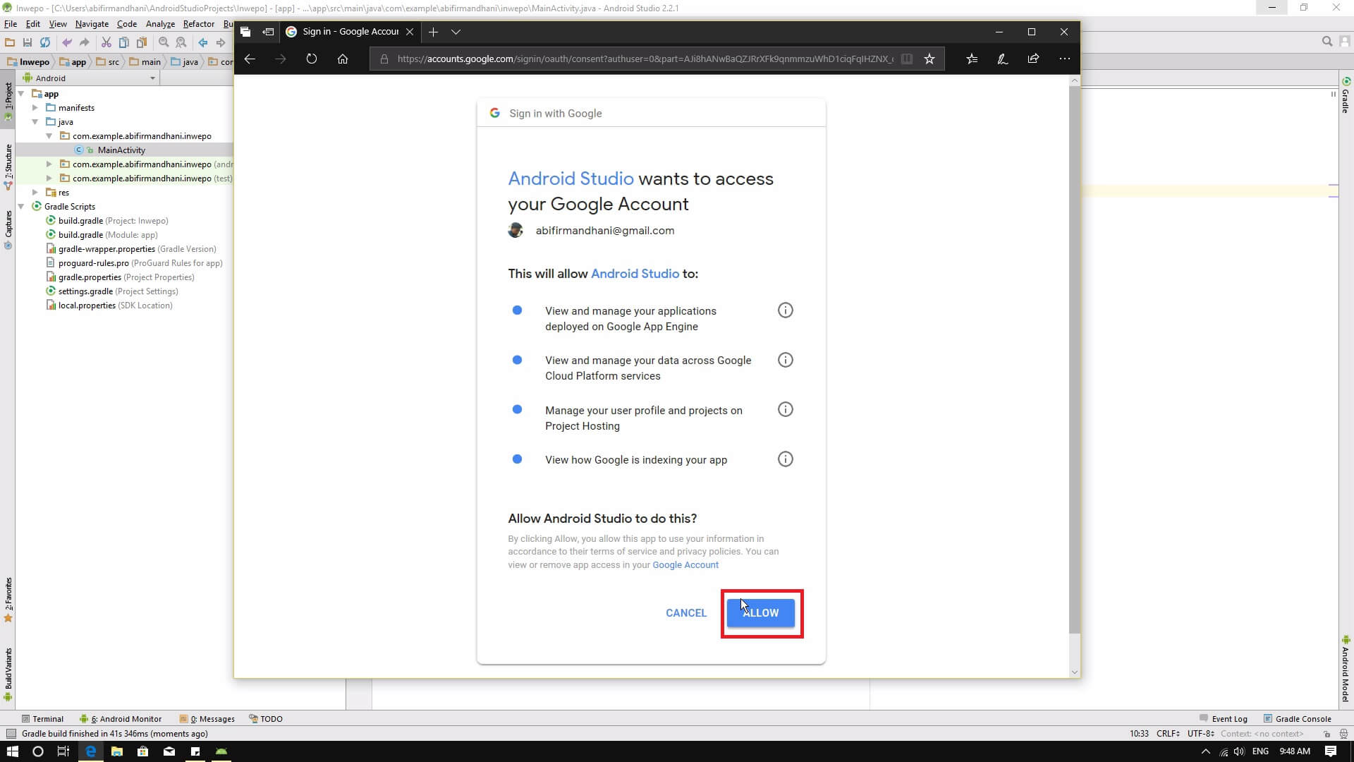 5. Klik tombol allow untuk melanjutkan.
