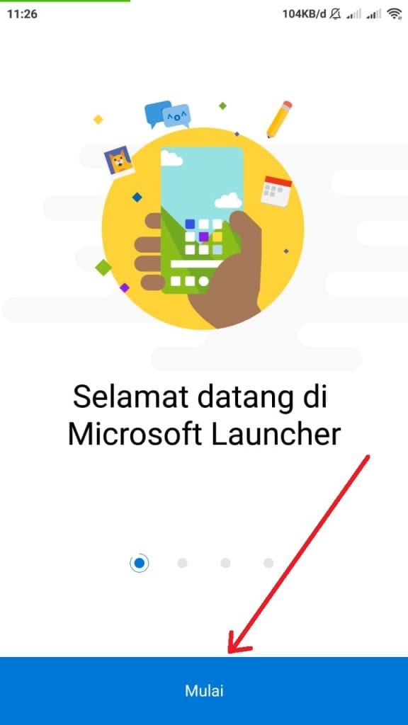9. Jika aplikasi sudah terpasang, kamu buka aplikasi tersebut, pada saat pertama kali membuka kamu akan melihat tampilan seperti gambar di bawah, kamu tap pada tombol mulai.