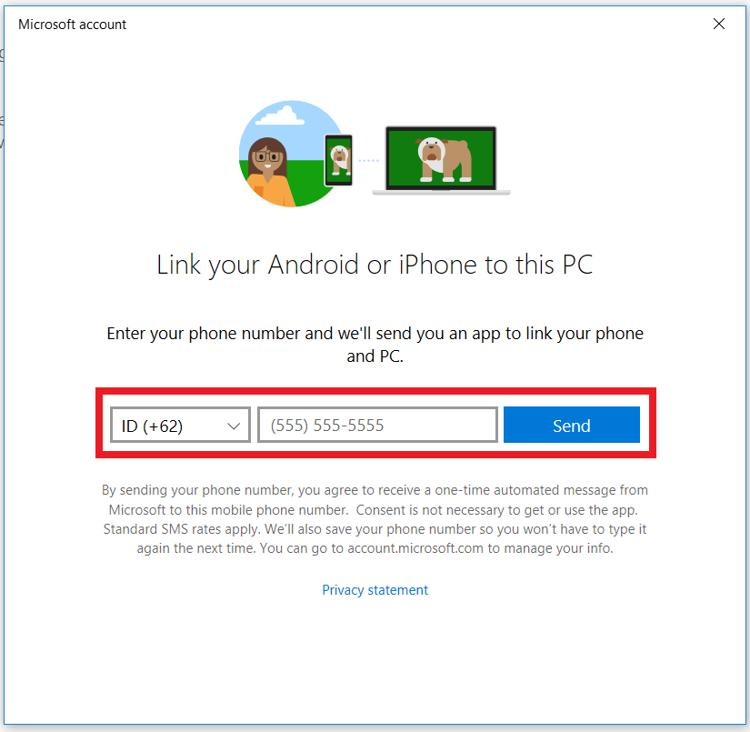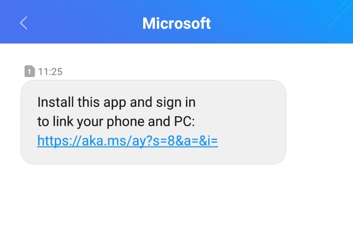 6. Kamu cek di smartphone kamu dan pastikan ada SMS masuk dari Microsoft, jika ada kamu tap pada url yang diberikan di SMS tersebut.