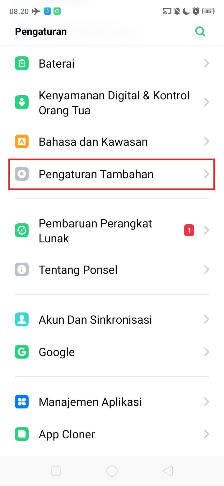 3. Cari, dan pilih ‘Pengaturan Tambahan’.