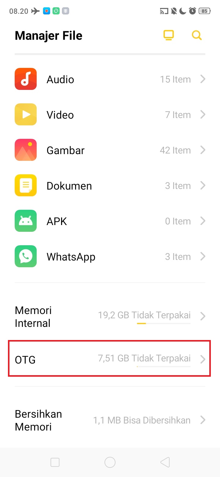 Ketika koneksi OTG aktif, maka langsung diarahkan ke ‘Manager File’. Akan muncul folder OTG. Disini kamu bisa memindahkan file di flash drive ke HP Realme, atau sebaliknya memindahkan data dari HP Realme ke flash drive.