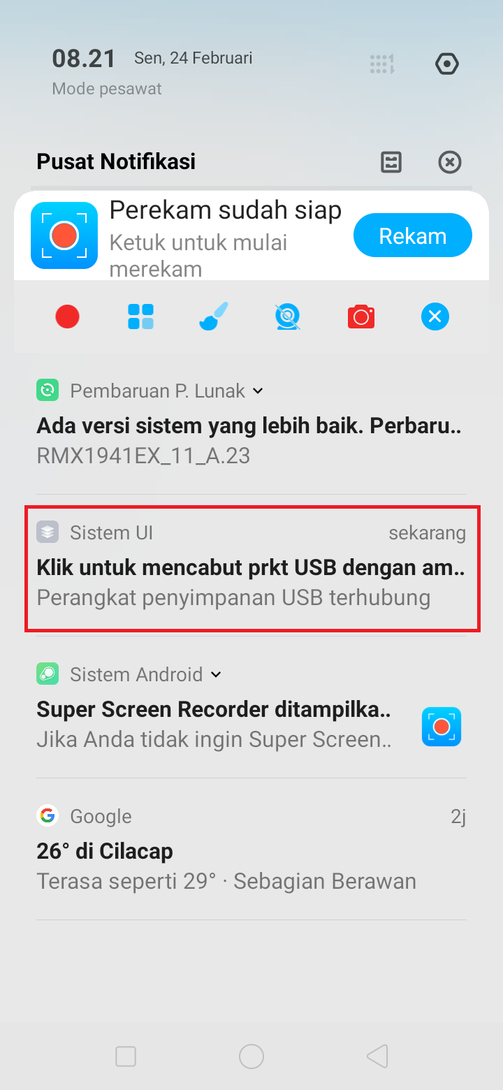 5. Untuk mencabut flash drive dari HP Realme, turunkan menu atas HP Realme.