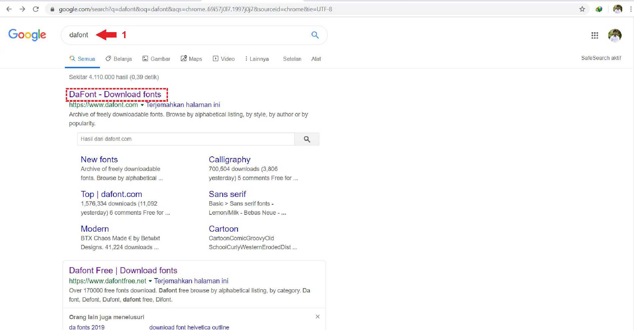 1. Pertama, kita perlu download file font yang diinginkan. Salah satunya dapat di download pada situs www.dafont.com