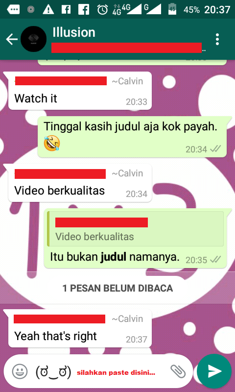 5. Pilihlah Personal Chat atau Group Chat. Kemudian, paste simbol ASCII Emoticons yang tadi ke dalam kolom chatting.