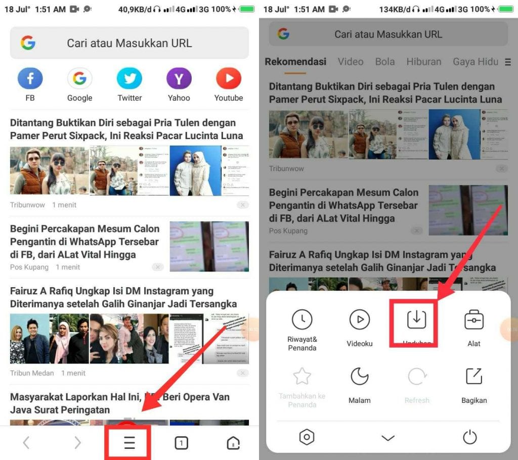3. Klik icon strip tiga di tengah menu, lalu pilih Unduh.