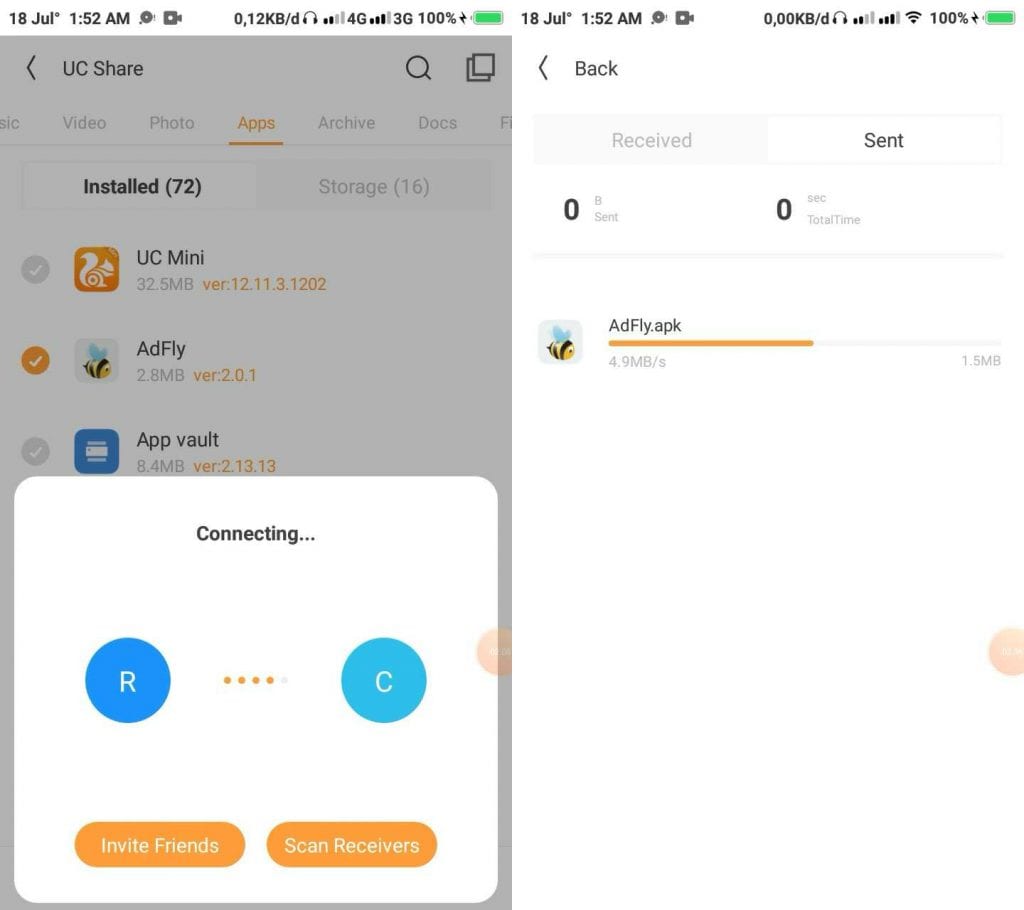 6. Setelah terhubung, tunggu beberapa saat hingga proses pengiriman selesai. Namun apabila terdapat kendala kegagalan tidak connect, pastikan wifi ponsel si penerima, dan hotspot pengirim aktif.