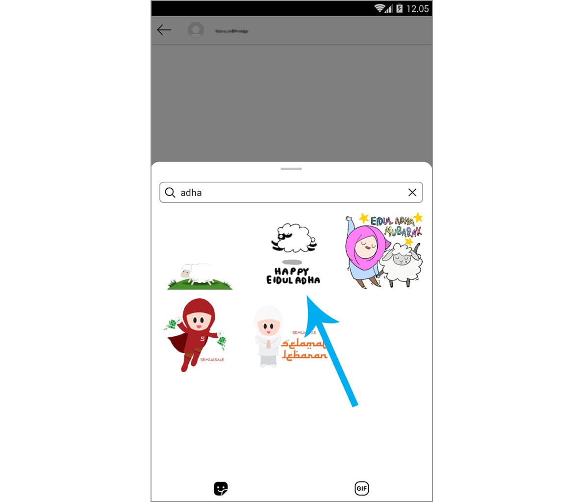 6. Jika sudah menemukan stikernya, silakan ketuk pada stiker tersebut.