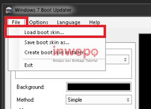 5. Jika kamu sudah mendapatkan berkas proyek boot screen windows 7, lalu pada aplikasi, kamu klik pada menu file – load boot skin.