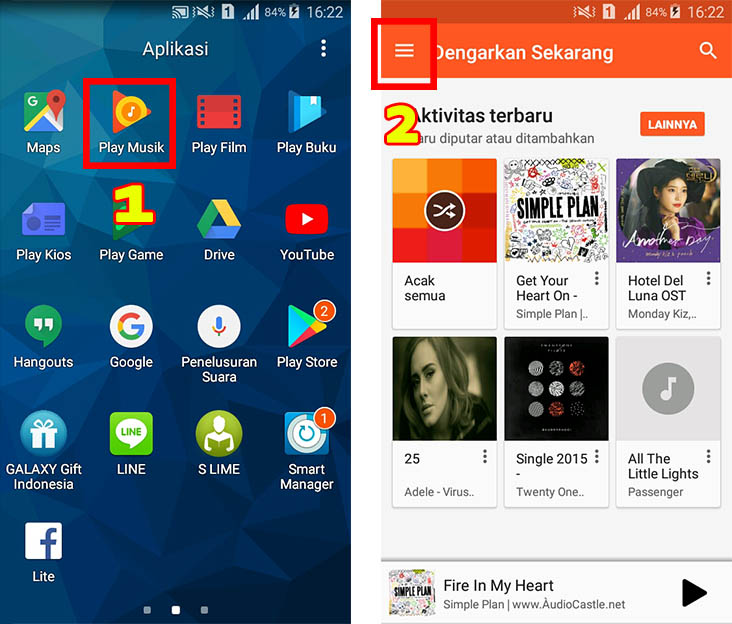 1. Masuk ke aplikasi Google Play Music yang ada di ponsel kamu.