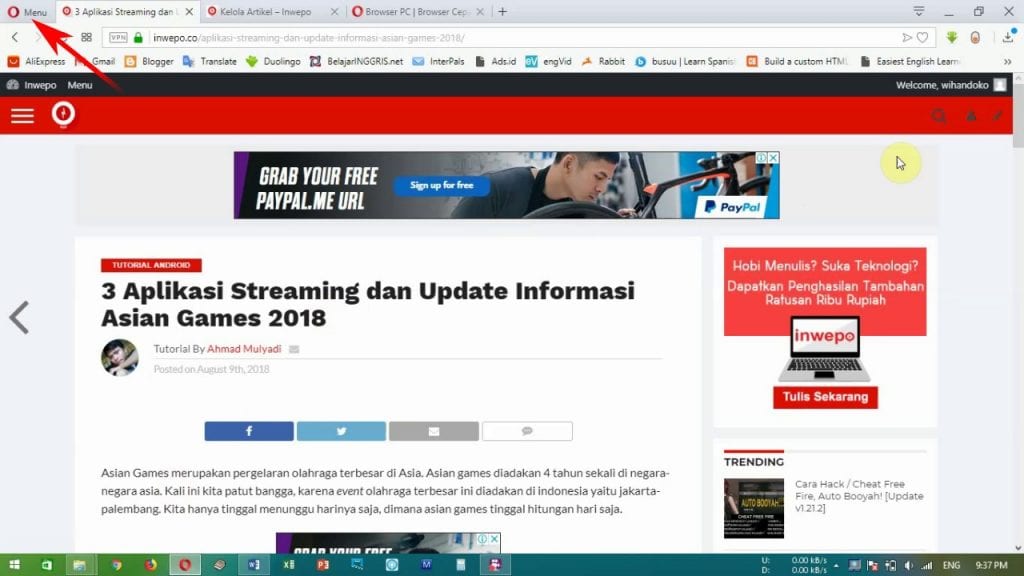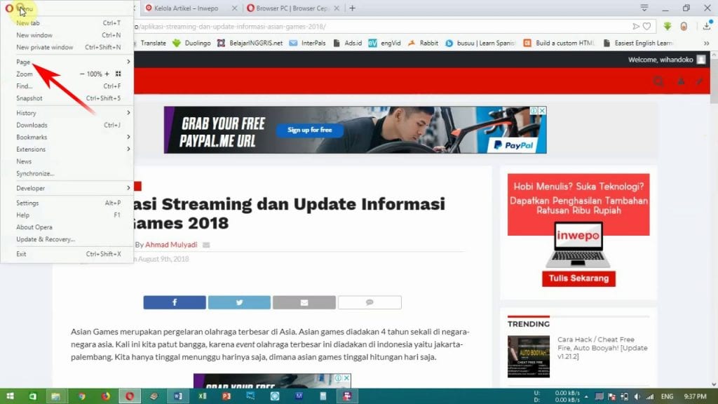 Dalam tutorial ini kita akan menggunakan browser Opera tebaru, karena lebih mudah dan Opera sendiri sudah menyiapkan fitur khusus untuk mengubah sebuah halaman web menjadi PDF.