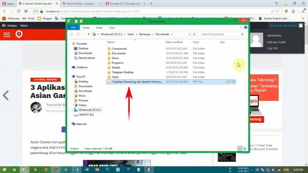 6. Halaman web sudah terdownload sebagai PDF, klik pada ikon folder.