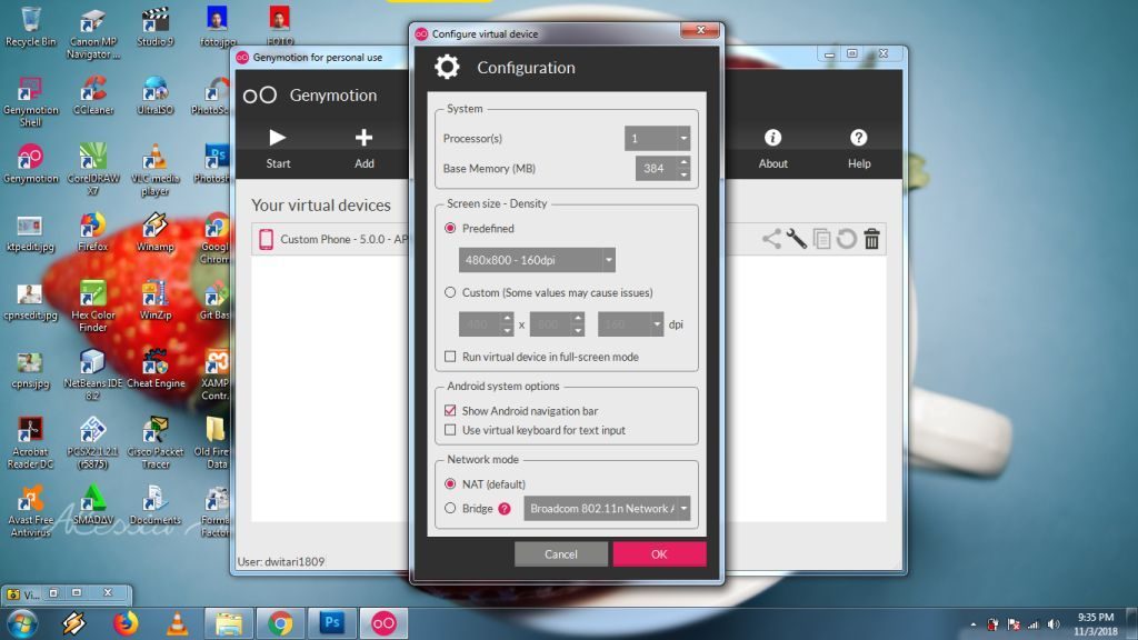 Penulis akan berikan tutorial cara mengubah kapasitas kartu memori RAM di aplikasi Genymotion. Ini cocok untuk laptop atau notebook yang spesifikasinya rendah karena performa sistem kerja pada sistem operasi menjadi lambat atau sebaliknya.